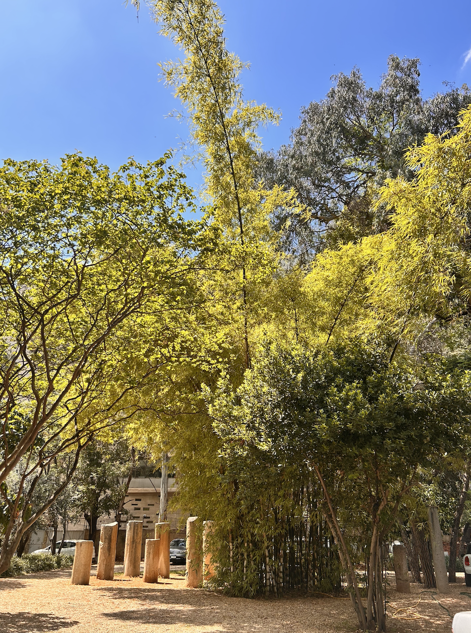 Les bambous du jardin font partie de la variété appelée « dragon bamboo » ou « bear bamboo». Venu d’Asie du sud-est, ils peuvent atteindre plus de 30 mètres avec des tiges épaisses et de grandes feuilles. D’après les souvenirs de famille, celui-ci fut planté dans les années 1970.